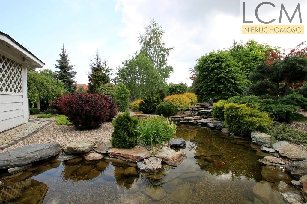 A beautifully designed garden of scenic beauty makes a breathtaking view with unique and original plants, a cascade, and a stylish garden house...